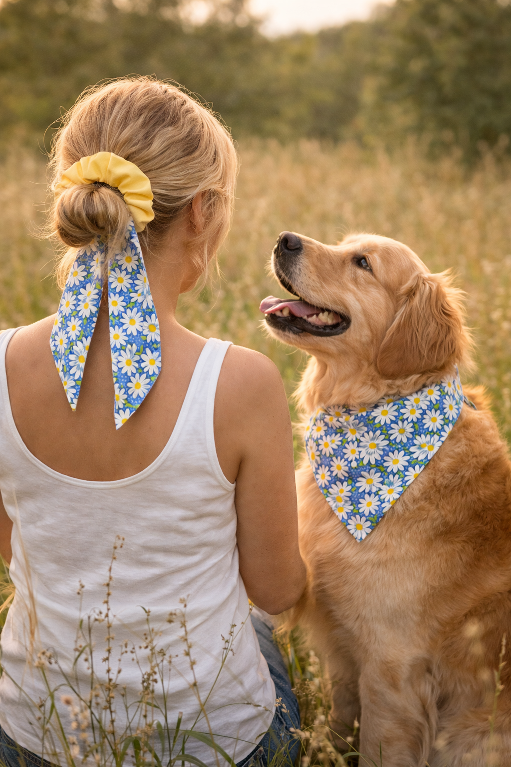 Daisy Field Matching Dog Bandana & Scrunchie Set 🌼