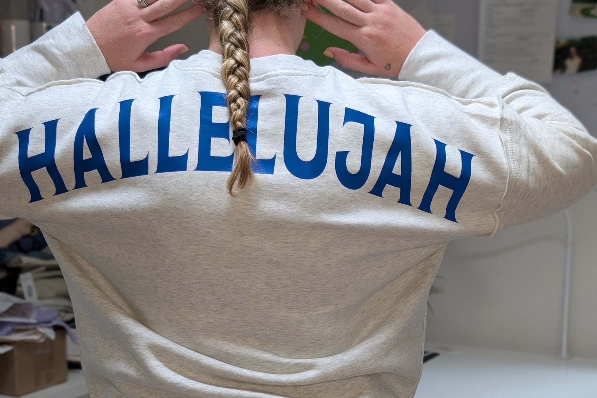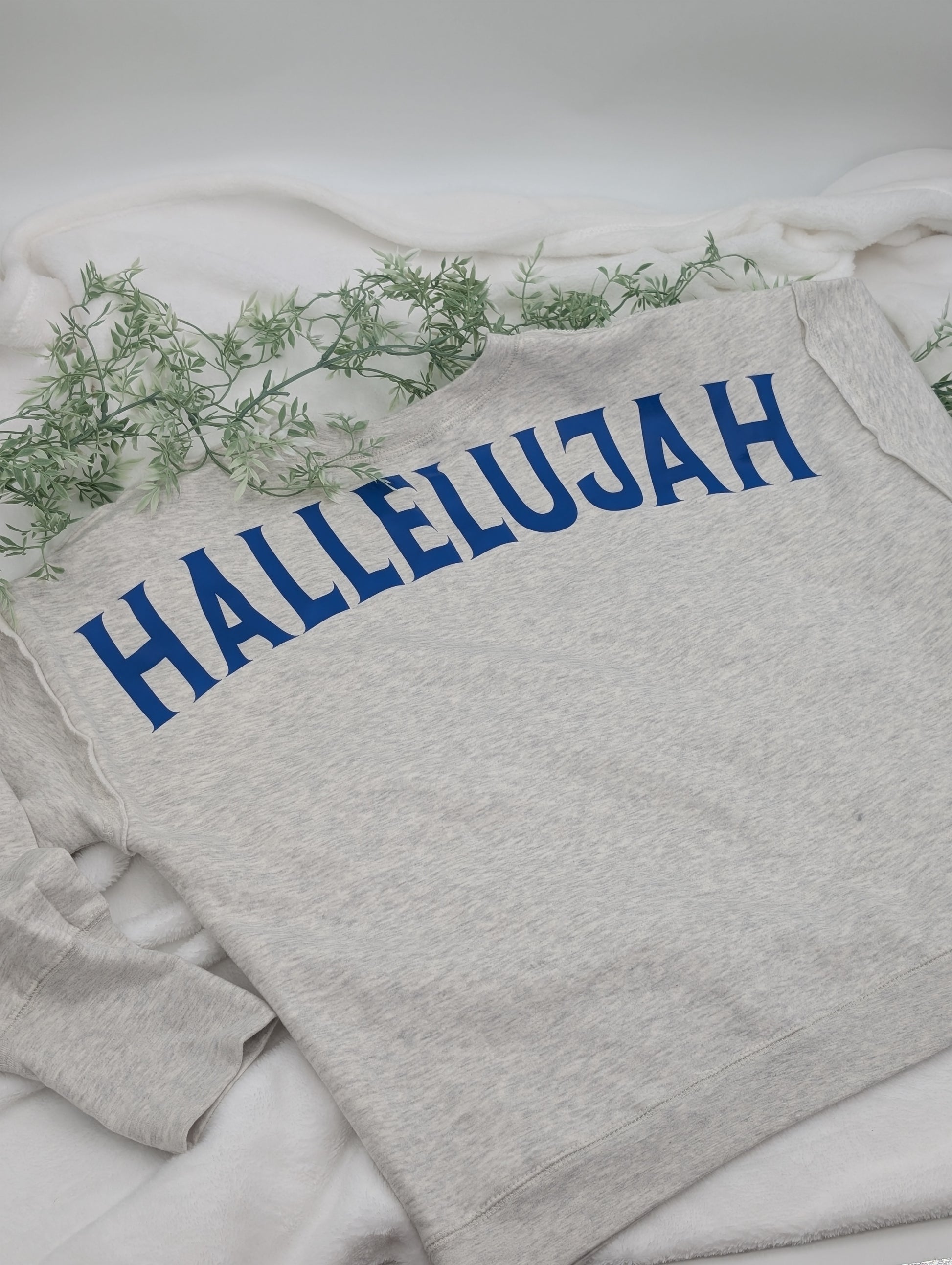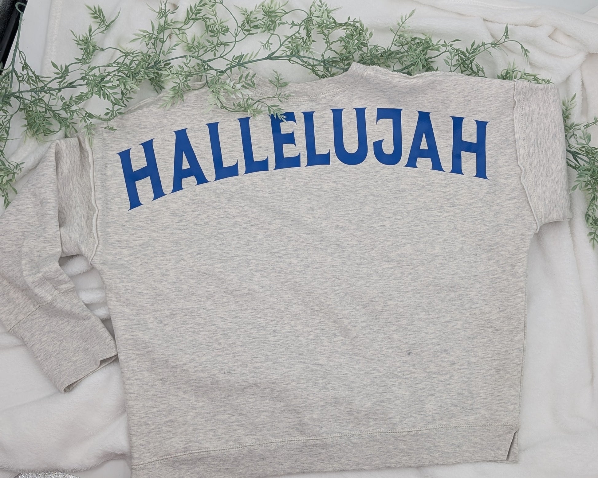Experience unmatched comfort with the Hallelujah Women's Shirt, crafted from a cozy 65/35 cotton/poly sueded fleece blend. Featuring a relaxed boxy fit and stylish drop shoulder detail, this sweatshirt offers warmth without compromising on style. The design keeps the front minimalist while showcasing bold "HALLELUJAH" lettering on the back, making it a striking conversation piece. Perfect for layering or wearing solo, it adds effortless flair to any outfit.